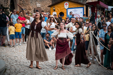 Espectáculos y entretenimiento: Justas, combates armados, música ambulante, teatro, bufones de la corte y desfiles animan las calles de Óbidos.