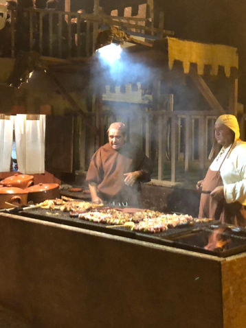 Feiras e artesanato: centenas de artesãos e regatões vendem produtos tradicionais em barracas coloridas; aromas de especiarias, carnes assadas e iguarias medievais permeiam o ar.